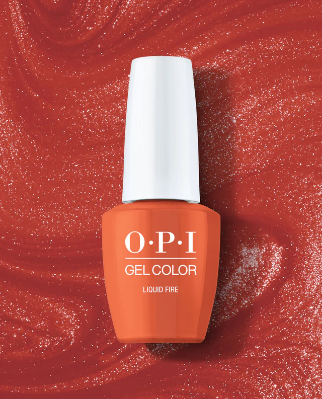 Siente el calor con el esmalte de gel Liquid Fire. Este color de uñas es un tono naranja fundido con acabado metalizado. La colección OPI Metallic Mega Mix presenta una mezcla de acabados metalizados.