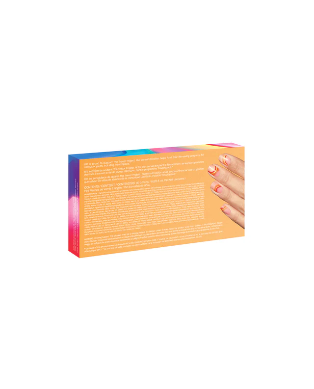 Completa tu look con: 4 mini esmaltes Make ‘Em Jelly (1 de cada tono): Blushin’ Pride, Prideful Peach, Daffodil Duck Walk, Pose-in Ivy, Blue Them All Away y Vogue en Violet.