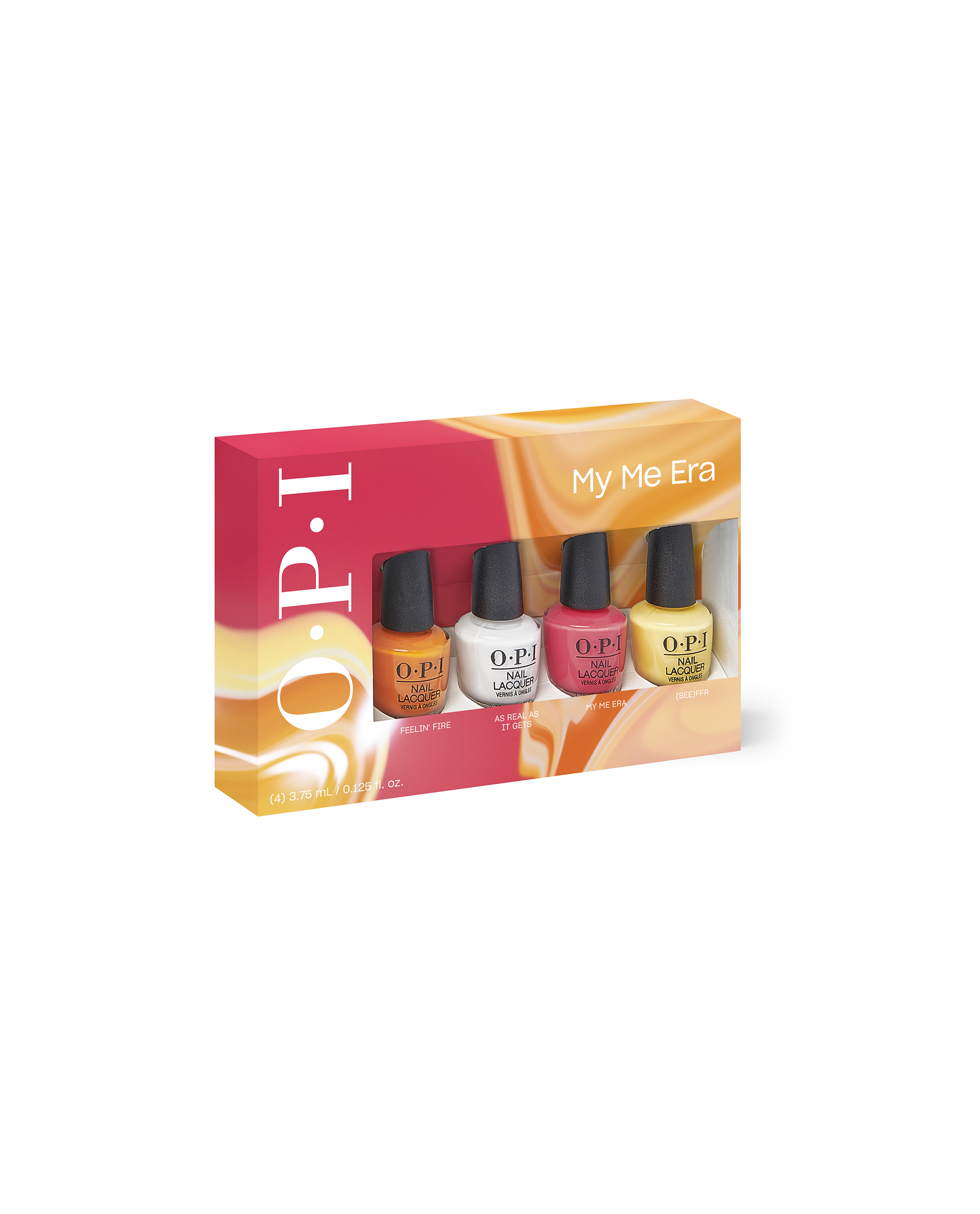 Este mini pack de 4 esmaltes de uñas OPI te permite probar varios colores de la colección My Me Era de este verano. Encontra tu tono de esmalte de uñas favorito o mézclalo y combínalo para encontrar tu propio look.
